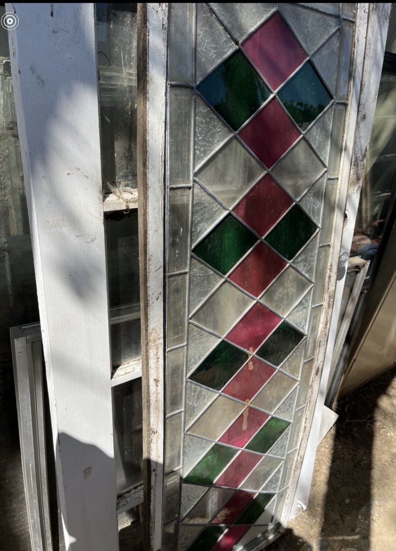 I've been collecting old windows and doors for a few years, hoping that when my hubby retires, he will build me a greenhouse out of them. I don't know if making my office a temporary greenhouse motivated my hubby to start building the actual greenhouse or if he just decided he was ready, but last week he started building the greenhouse. While I was collecting windows and doors, he acquired wood of various shapes and sizes, and although some of it is a little bowed, it will be fine for the greenhouse.