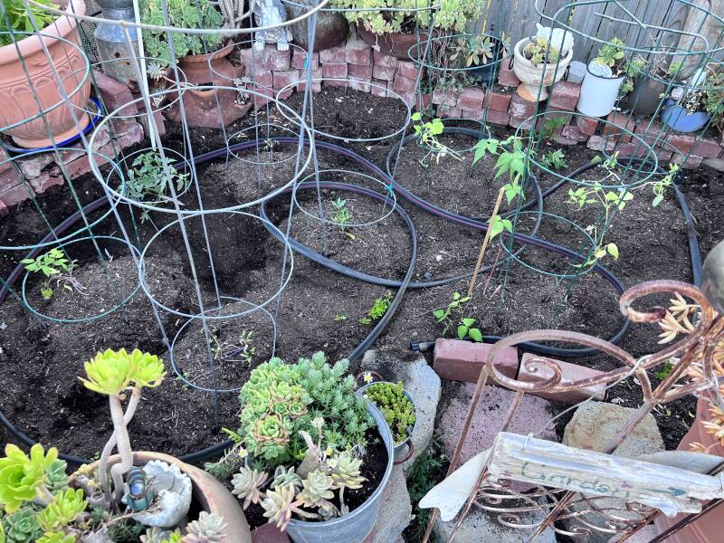 The garden is planted, and the greenhouse is almost done!